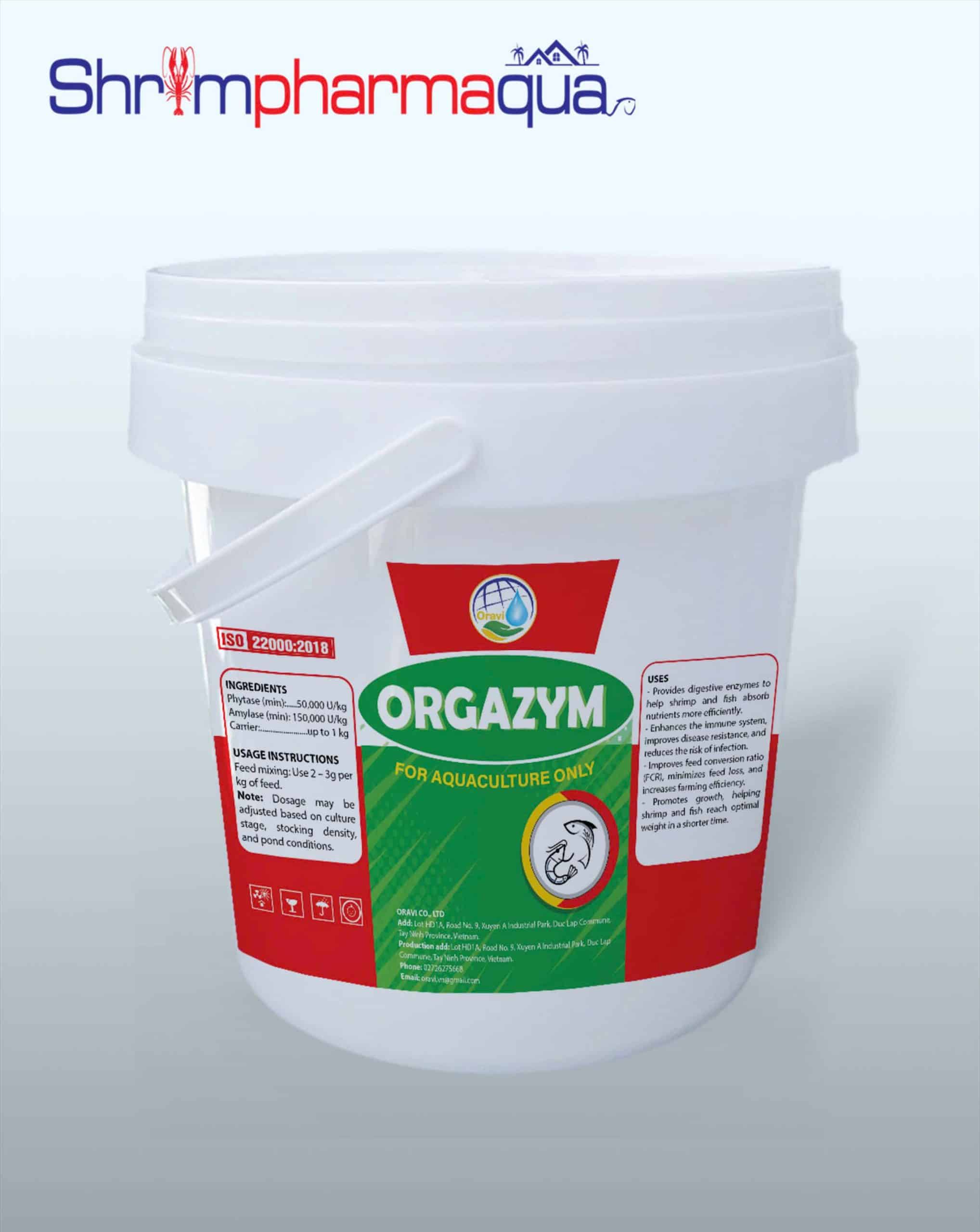- Orgazym – men tăng trọng giúp tôm tăng cường tiêu hoá hiện có giá 229.000đ/xô. Đây là sản phẩm được Shrimpharmaqua cung cấp từ nhà máy đến tận tay khách hàng và phân phối chính thức qua hệ thống cửa hàng và các kênh bán hàng online.